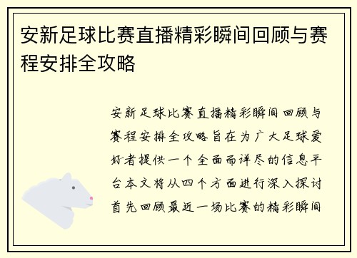 2023年8月1日,全球足球迷齐聚一堂,共同见证了一场令人振奋的精彩比赛。本文将通过直播全程回顾与精彩瞬间分享,带领读者重温这场激情四溢的对决。我们将从比赛概况、精彩时刻、球员表现以及战术分析等四个方面进行详细阐述,让每位读者都能感受到比赛的热烈气氛和动人魅力。无论是进球的欢呼声还是战术的较量,这场...